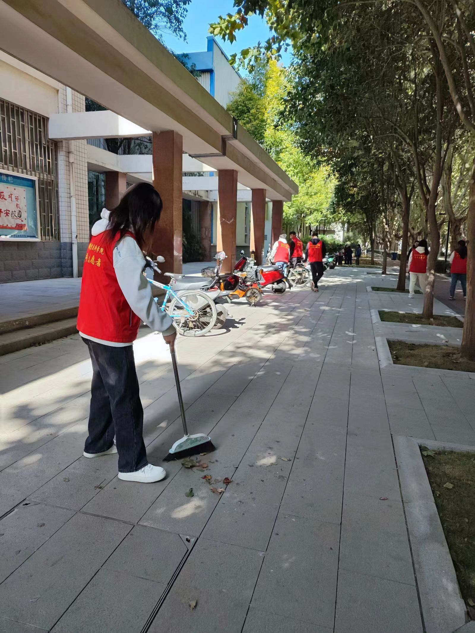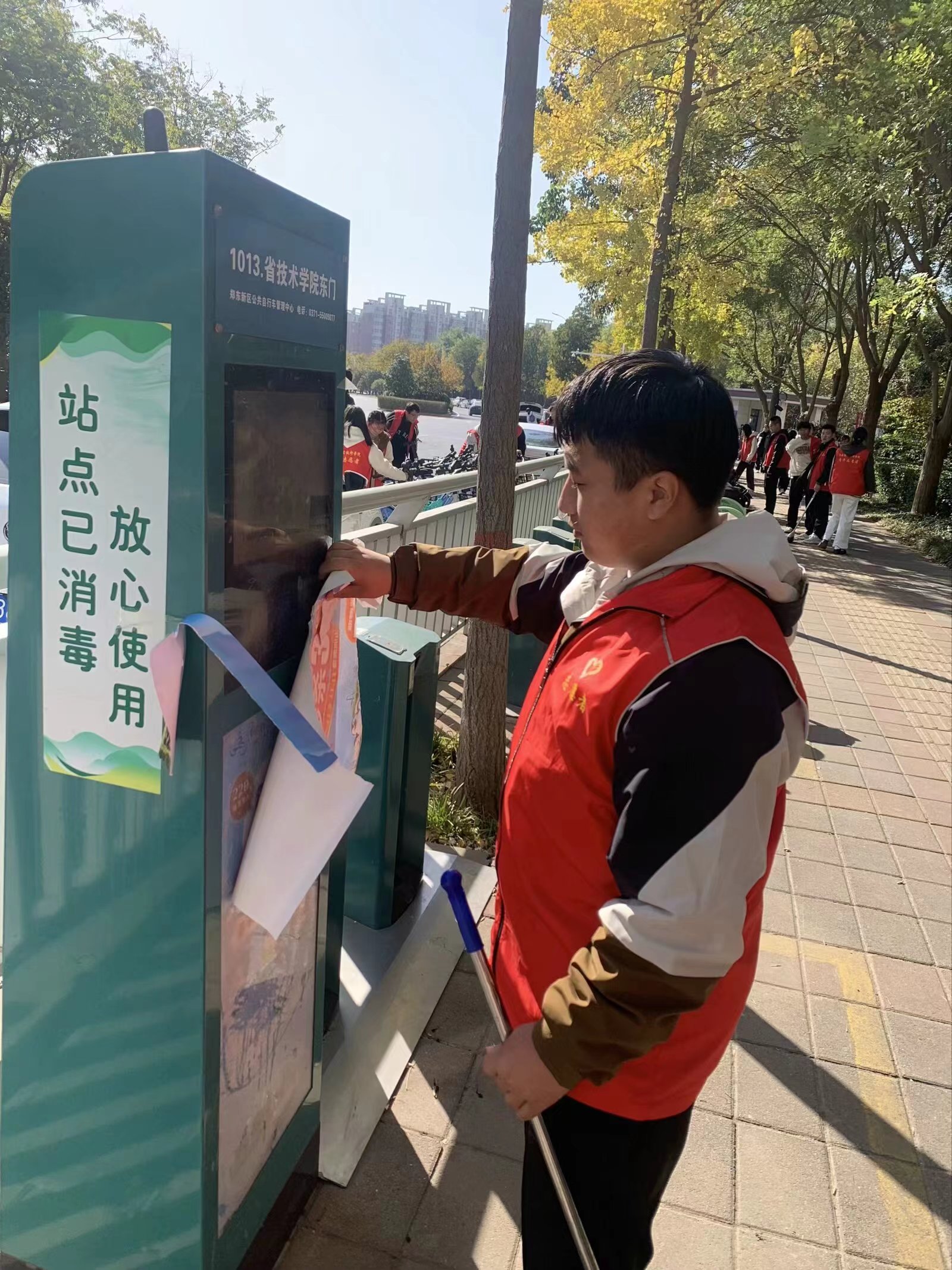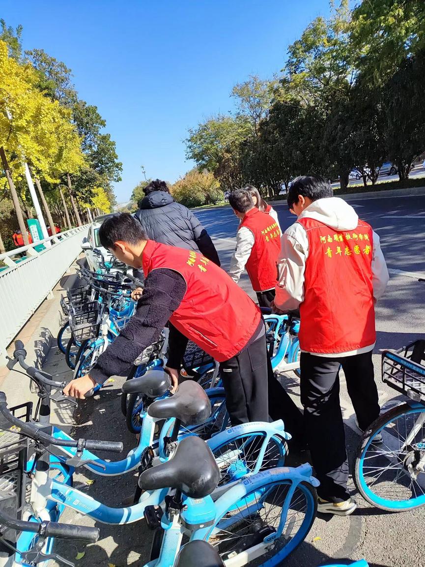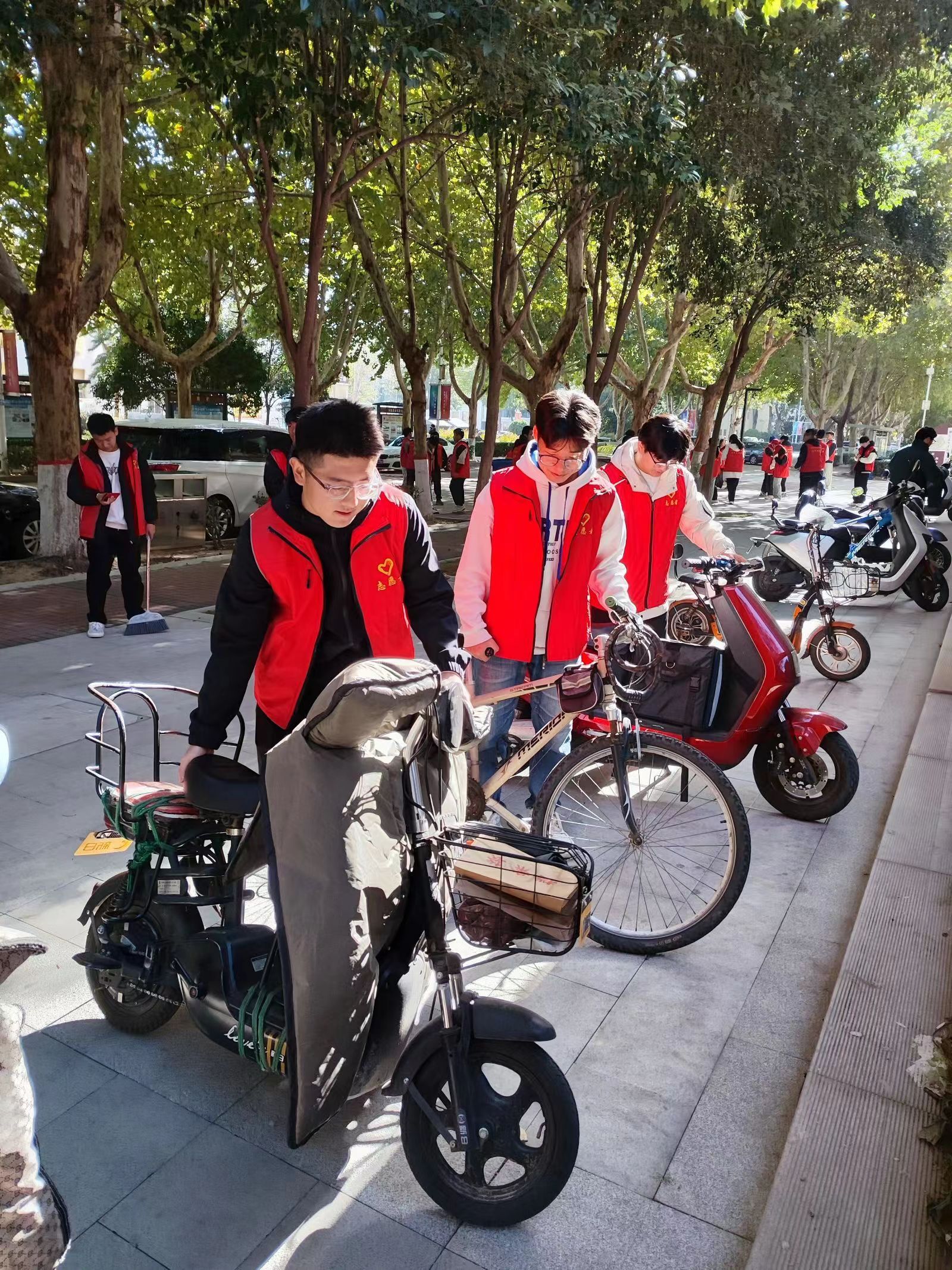 活动中,志愿者们不怕脏,不怕累,把“摔倒”在路边的自行车逐一扶起,将道路两旁随意停放的自行车推到指定停放点摆放整齐。同时向过往同学宣传文明骑行、有序停放的重要意义,引导骑行者将自行车停放到相对集中的停放区域,并鼓励大家一起监督身边存在的不文明行为,共享文明生活。