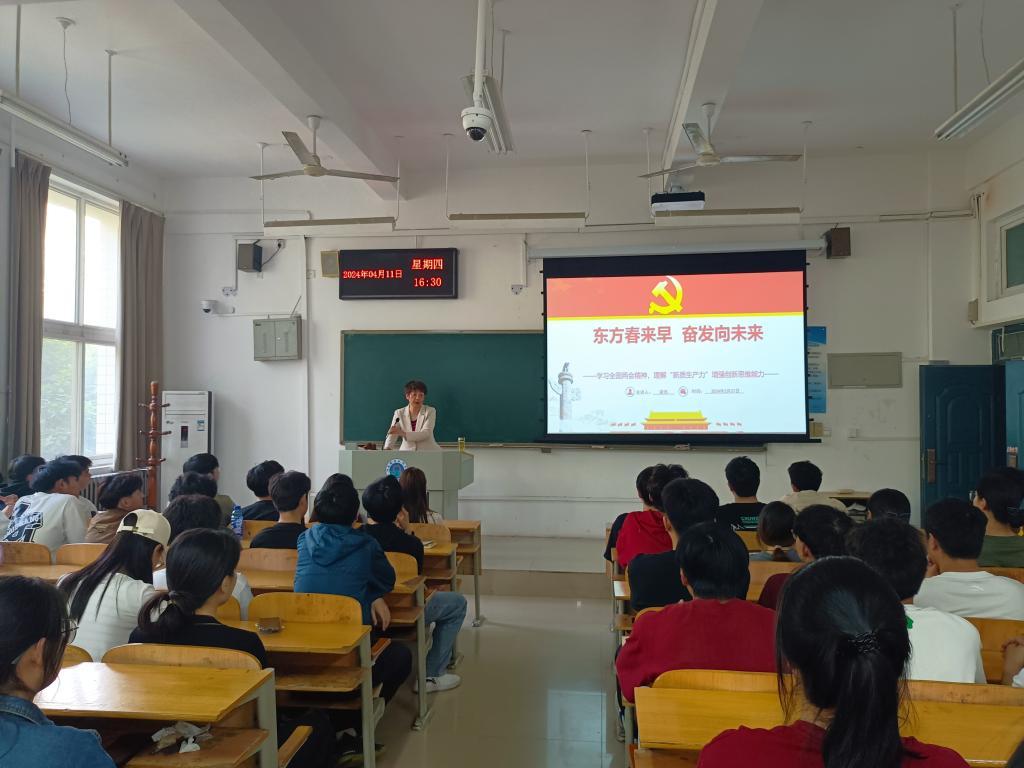 4月11日下午,马克思主义公司经理梁杰应邀在明理楼1102教室为公司2024年第一期入党积极分子做党课专题讲座,讲座主题为《东方春早来 奋发向未来——学习全国两会精神,理解“新质生产力”,增强创新思维能力》。