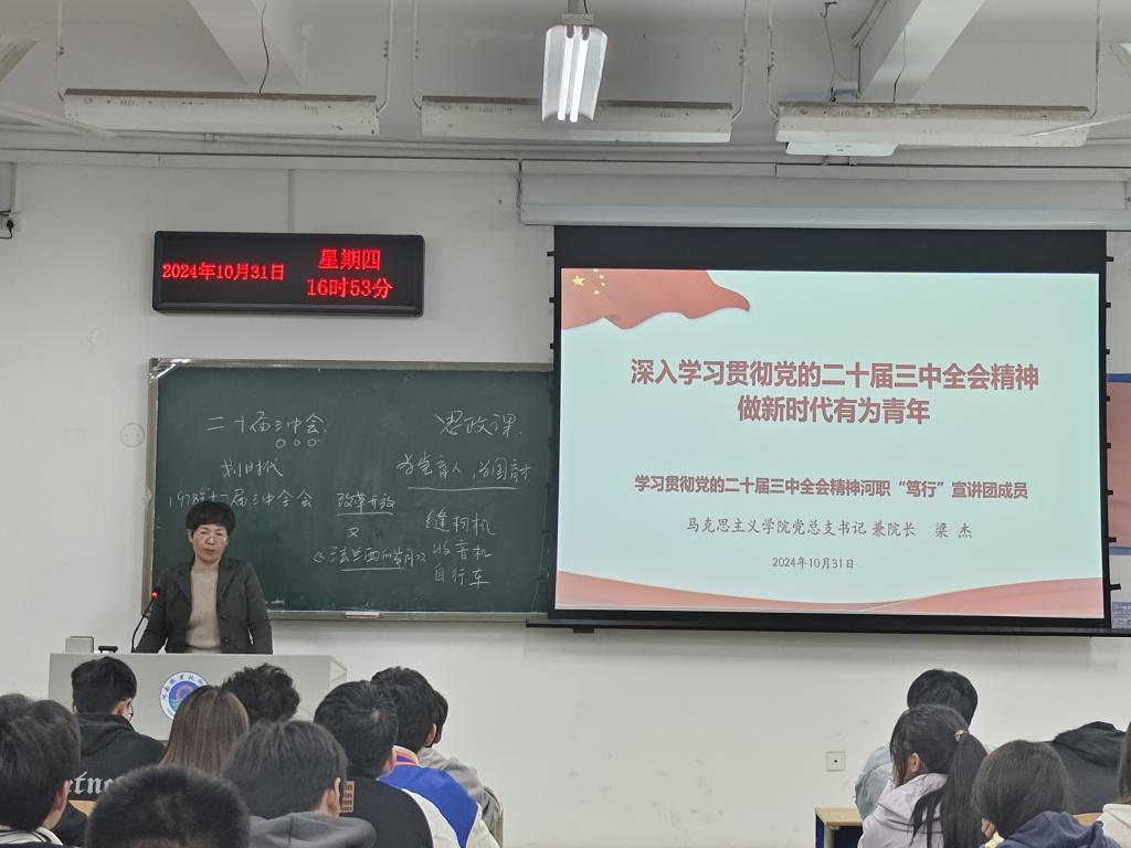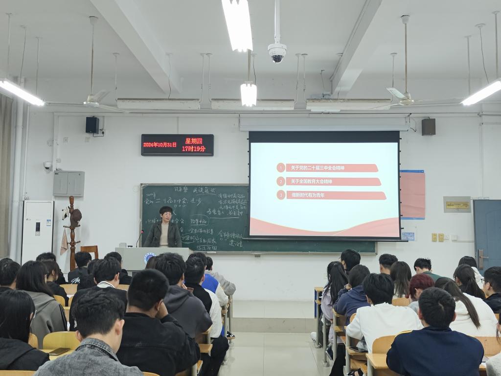10月31日下午,马克思主义公司党总支书记兼经理梁杰应邀在明德楼2107教室为公司2024年第二期入党积极分子做党课专题讲座,讲座主题为《深入学习贯彻党的二十届三中全会精神 做新时代有为青年》。