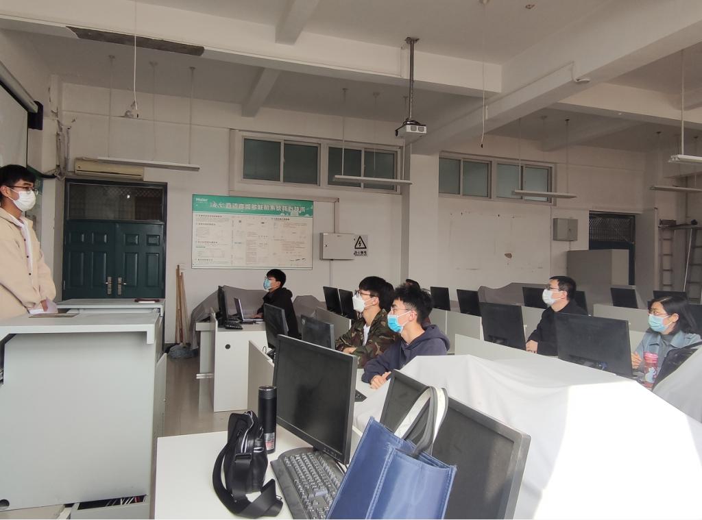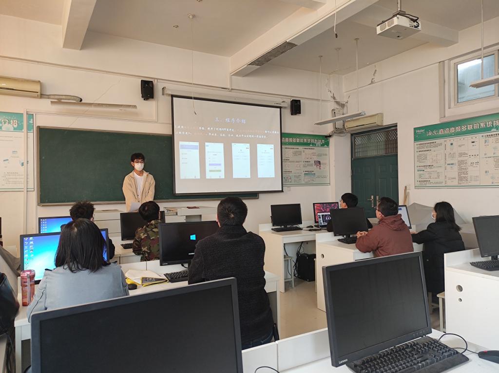 活动中,指导教师李明针对本届“互联网+”大赛的准备情况首先向大家做了简要汇报,之后王斌团队将作品“摘星辰-毕业生网上签约小程序”的开发、实施、部署等情况进行了路演,王斌团队四名成员罗文学、刘宇、郝佳辉均为通信20级及21级员工,其小程序主要用于毕业生网上签约工作,他们在详细分析开发环境的基础上,加入了手机屏幕签名融入并生成到电子签约协议书签名等核心技术,得到了教研室老师的一致好评。