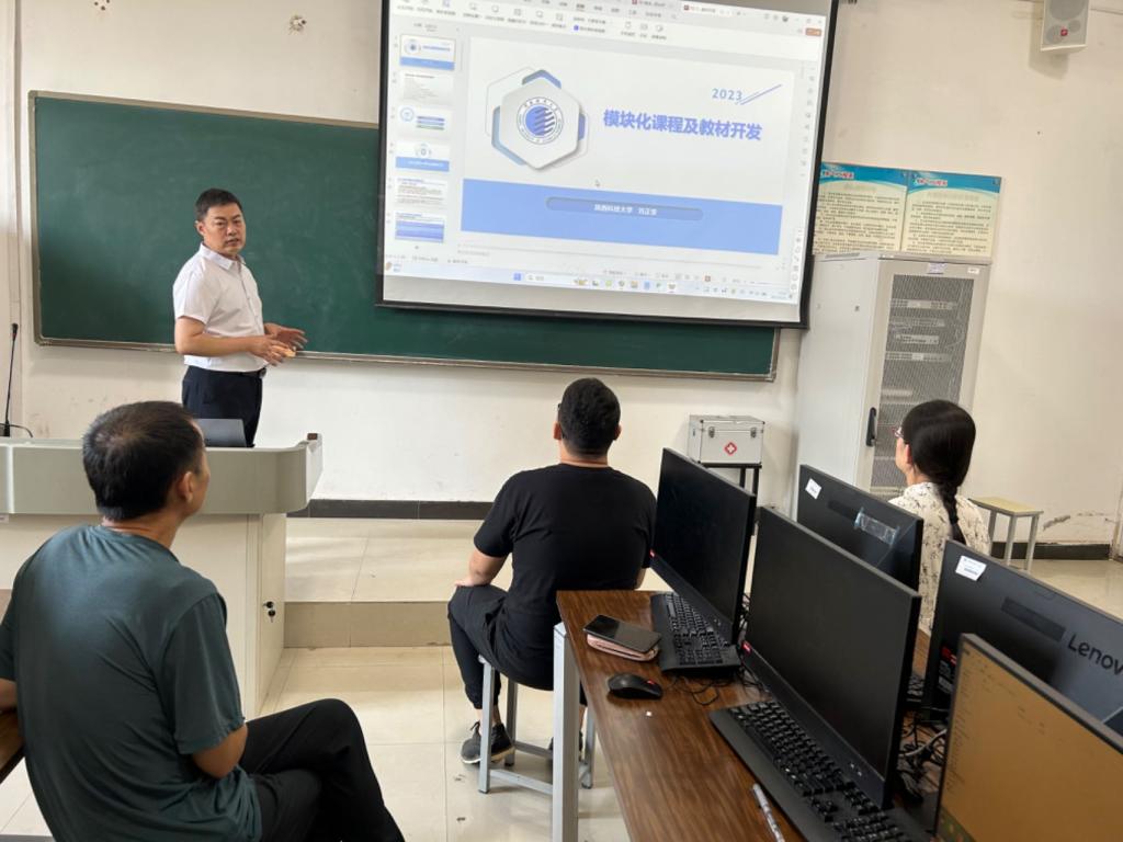 活动分为成果展示、教师讲座、研讨交流等三个环节。教师培训成果展示环节是本次活动的一大亮点。孙飞显老师、董帅老师通过PPT、图片等形式,展示了他们参与暑期校本集中培训的学习过程与成果,分享了学习收获、学习心得。教师讲座环节中,孙飞显教授针对培训期间的师德师风建设、“双师型”教师素能提升、课程体系、模块化教学等内容进行了讲座,并根据培训内容针对计算机网络技术专业2022版人才培养方案进行了分析,指出了一些不规范之处,以及在培训过程中教育专家提出的问题、解决方案和实践成果。其他教师对展示内容提出问题或分享自己的观点,促进了互动和碰撞。大家分别从不同的角度分享了最新的教育理念、教育政策和公司产品方法。研讨交流氛围非常积极融洽,教师们通过聆听其他老师的经验和见解,拓宽了自己的思路,增强了教学能力。