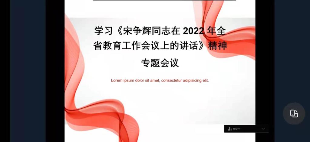 参会师生线下认真研读了宋争辉同志在全省教育工作会议上题为《构建高质量教育体系服务现代化河南建设》的重要讲话,认真学习了河南省教育系统面临的新机遇、新挑战、新形势、新任务,更加明确了2022年的教育工作中的十项重点工作和总体安排部署。大家结合个人实际工作学习情况通过钉钉线上会议展开研讨,交流学习体会。