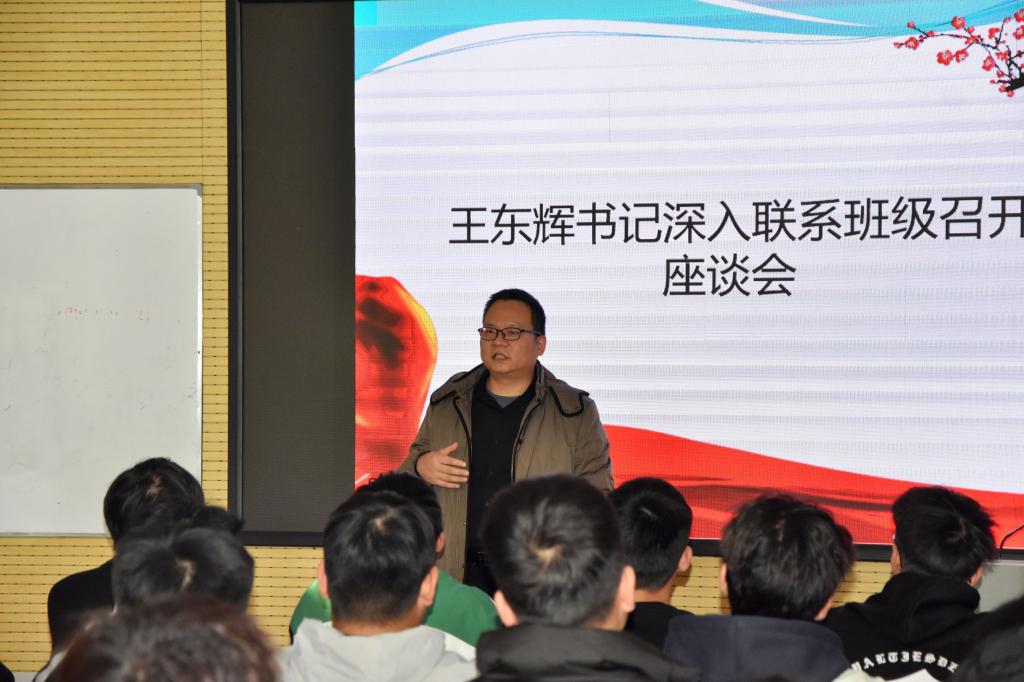 11月23日下午,公司党总支王东辉书记到机电实训楼405室深入联系班级电气231召开座谈会,40名同学参加了座谈会。