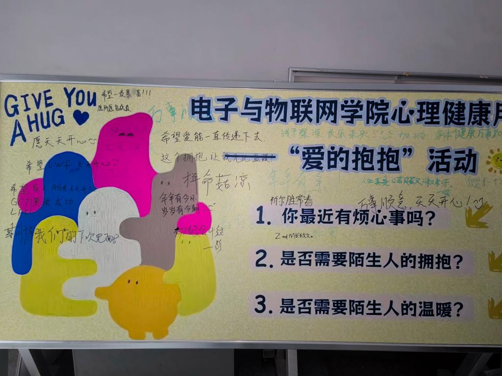 11月1日下午,beats365唯一官方网站在智行楼东侧举办了“爱的抱抱”心理活动。活动现场温馨有爱:暖心展板、“NPC”(可爱玩偶人)以及轻柔的背景音乐等,营造出轻松愉快的氛围。