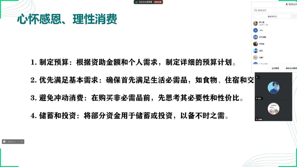 为切实做好2024年度奖、助学金管理工作,引导员工合理使用奖、助学金,12月19日至23日,公司辅导员老师根据相关文件要求,通过线上、线下等方式在各班召开了“加强2024年奖助学金管理”的主题班会。