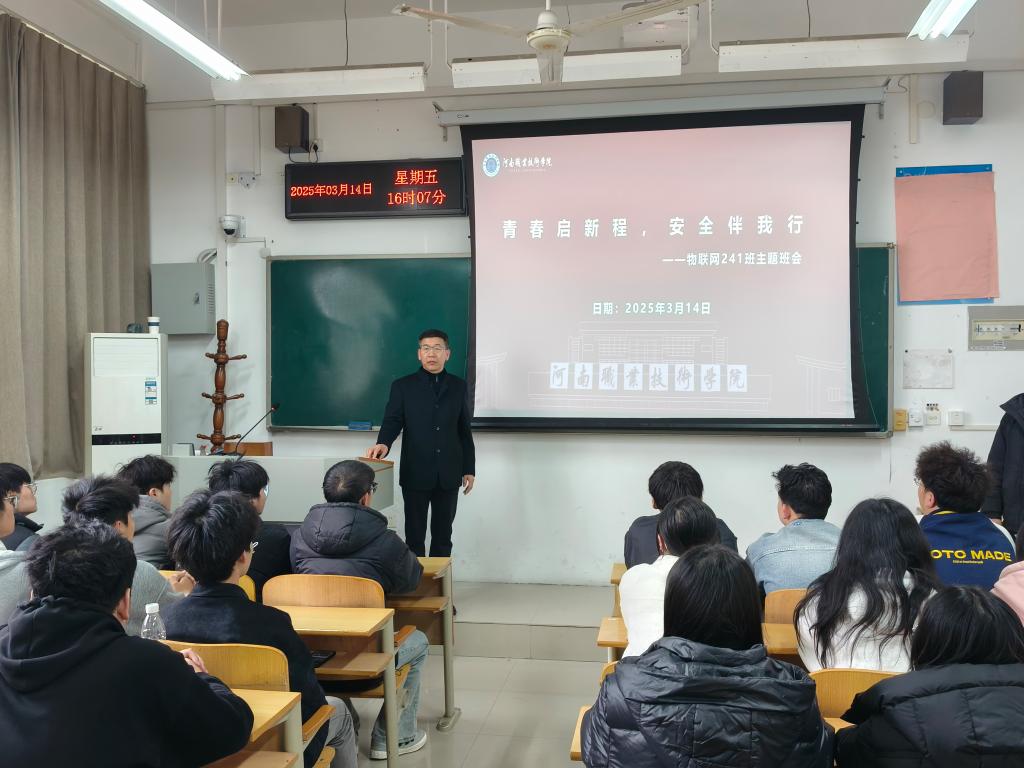 3月14日下午,公司党总支书记谭营军深入联系班级物联网241班,以“青春启新程,安全伴我行”为主题讲授思政课,并与同学们面对面开展交流。