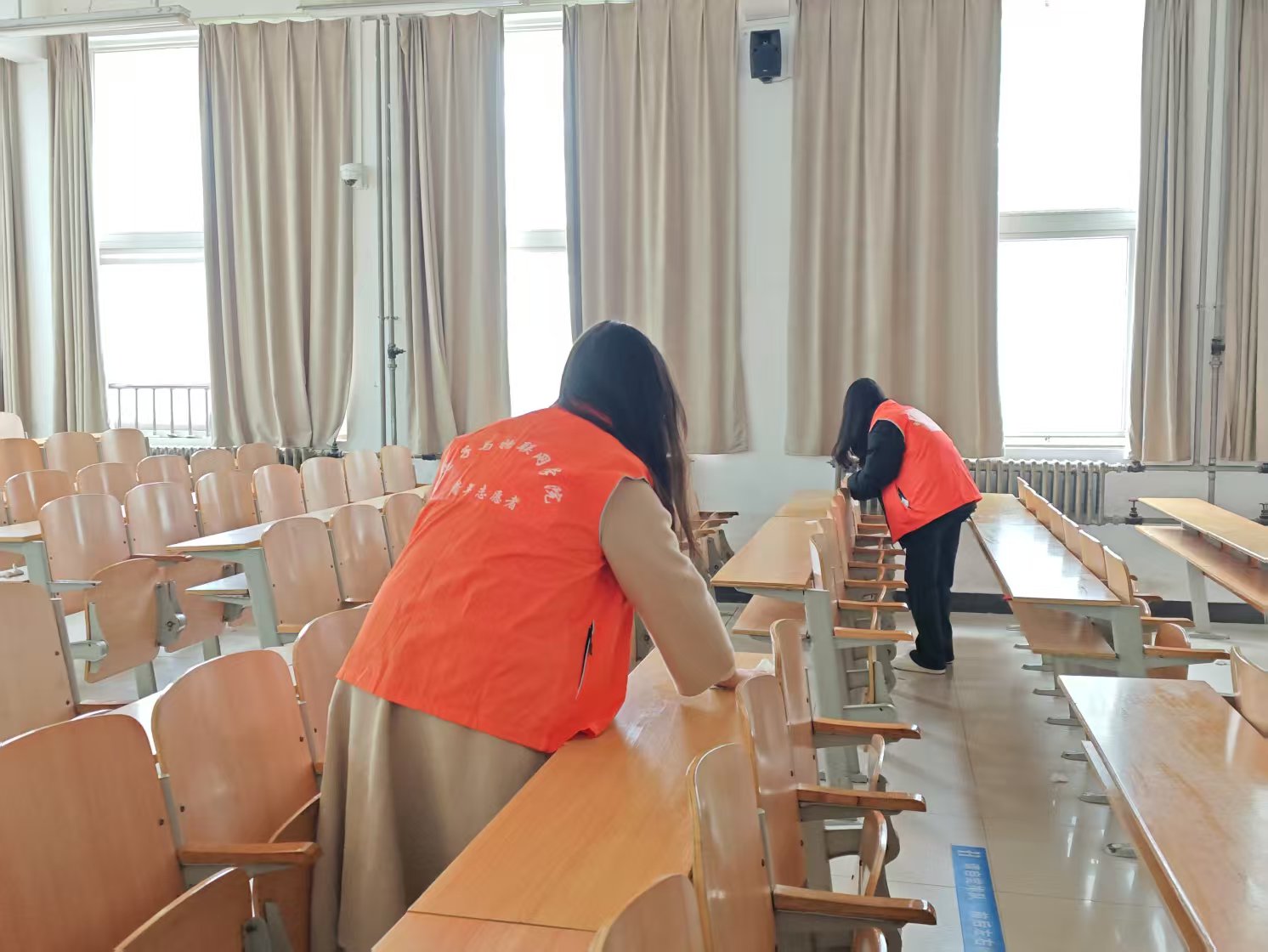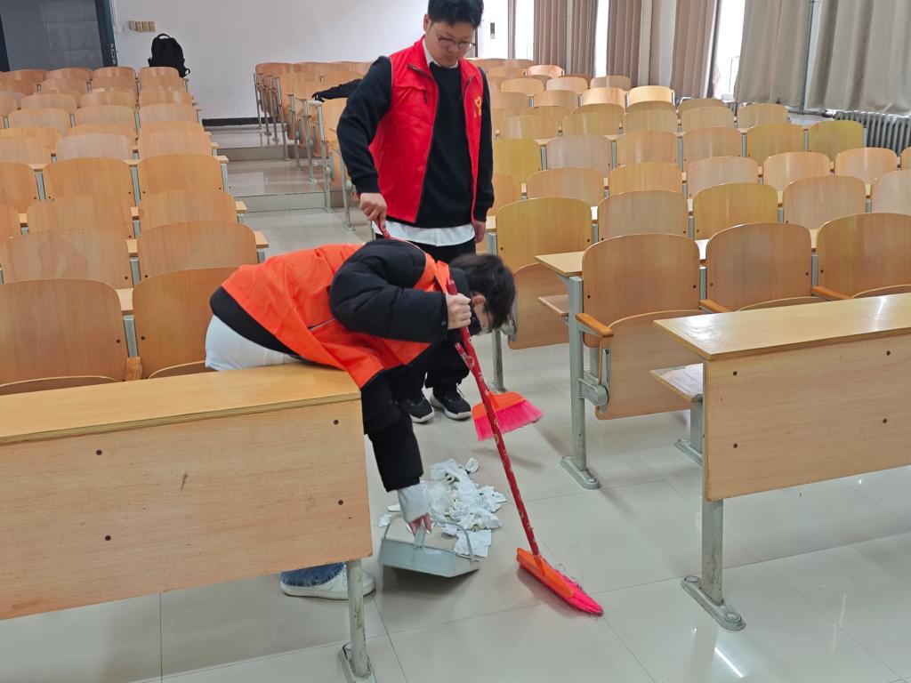活动中,志愿者们分组前往明理楼开展深度清洁。重点对教学楼60 间教室的桌椅、黑板及地面等进行清洁和整理使整个学习环境焕然一新,累计服务师生千余人次。