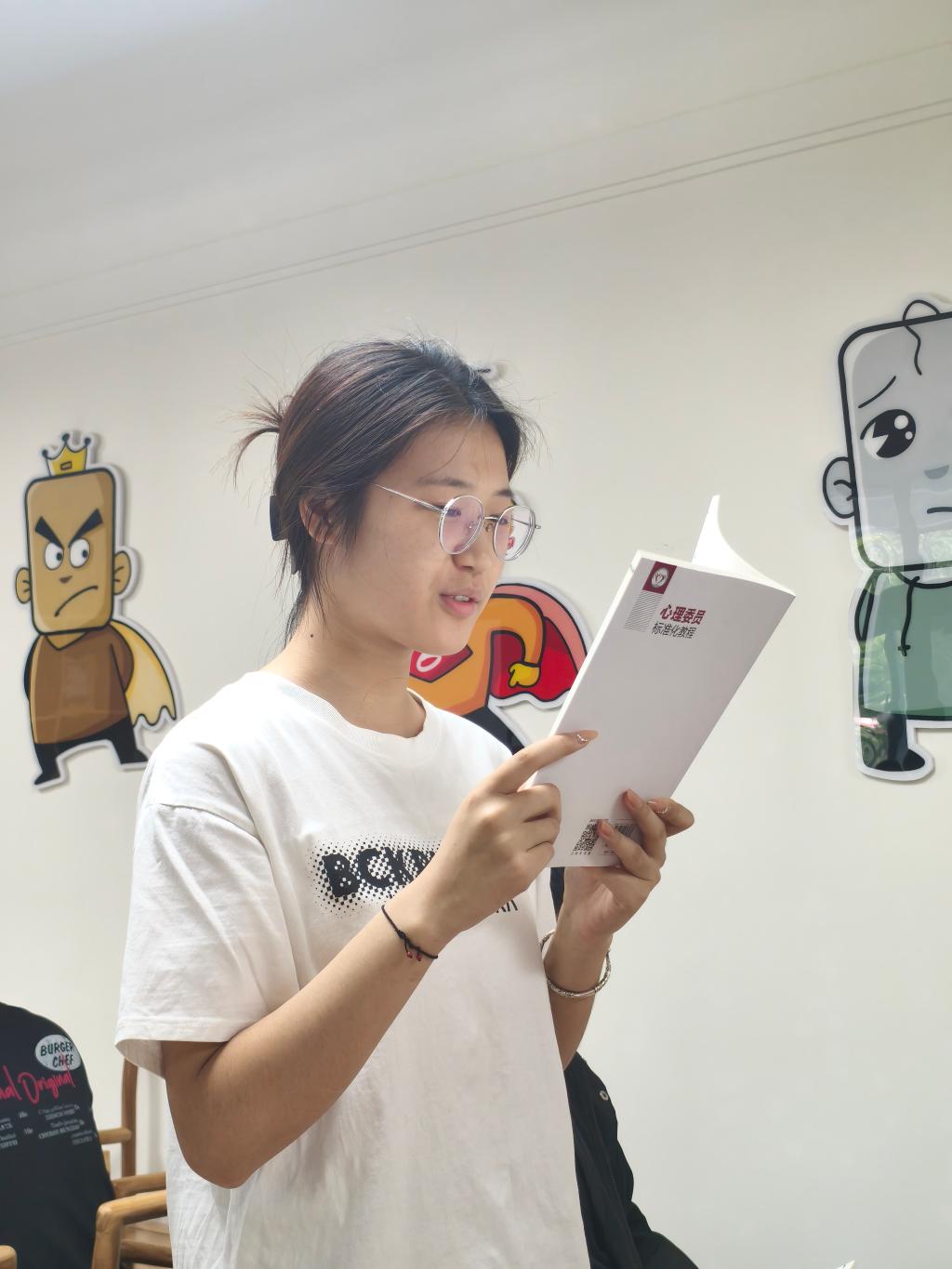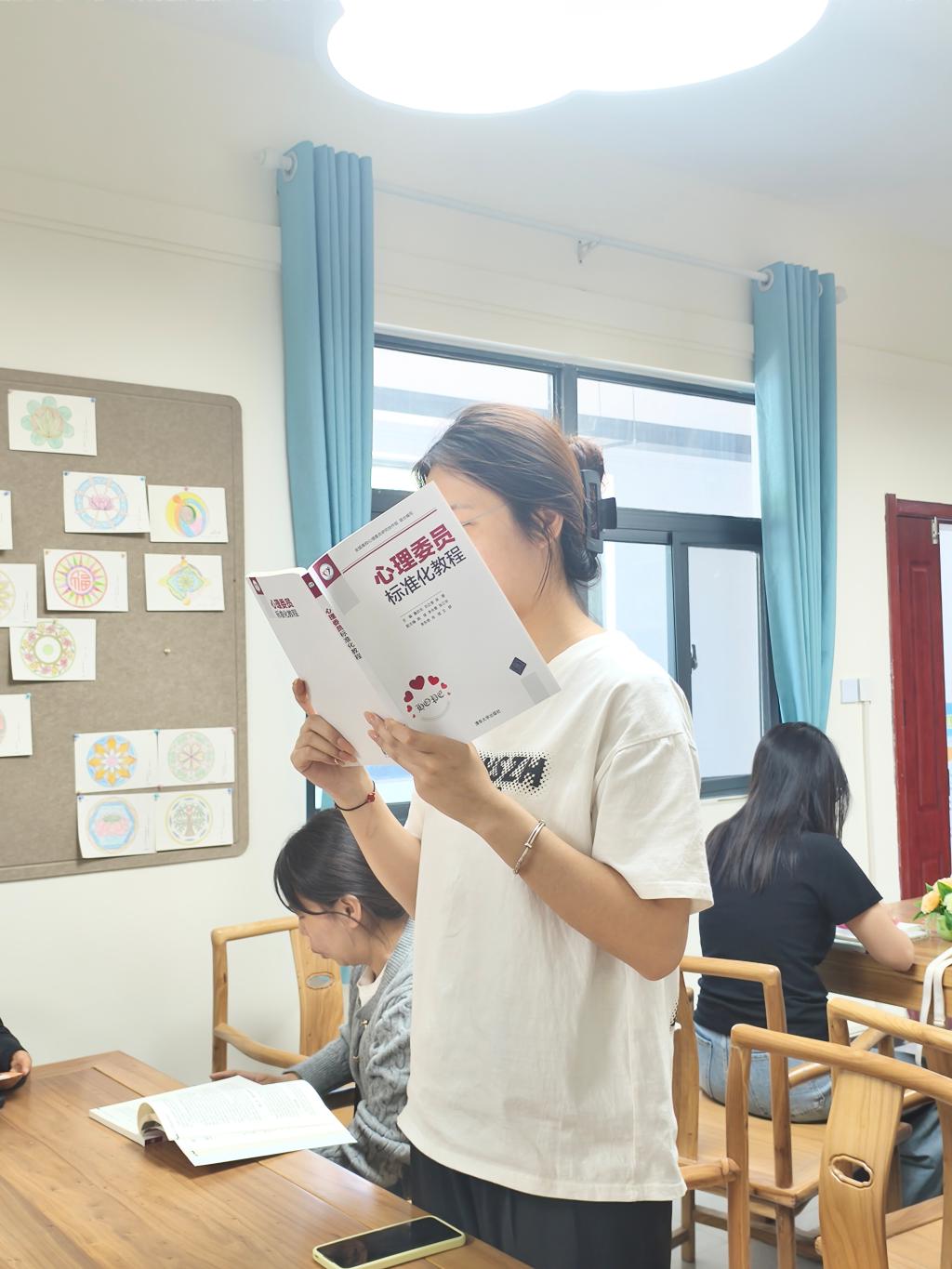 活动依托心理健康教育中心推荐的《心理委员督导360问》和《心理委员标准化教程》两本专业书籍。心理委员代表引导大家在阅读中实践,将书中的理论知识转化为切实可行的工作技巧。例如:如何识别同学的情绪信号、如何开展有效的交流谈心等。现场还进行了情景模拟练习,主要目的是让班级心理委员能够迅速察觉到同学们的心理问题,及时伸出援手,共同维护校园的积极氛围。