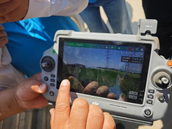 在接待人员的引导下,同学们首先观摩了四旋翼无人机智能化作业的生动场景。无人机精准执行药肥喷洒与智能监测任务,并应用多光谱遥感技术进行玉米表型分析,这一技术的应用有效提升农业智能一体化管理水平。在专业飞手的悉心指导下,团队成员们亲身体验了无人机的基础操控流程,对智慧农业装备的实际应用有了直观认识。