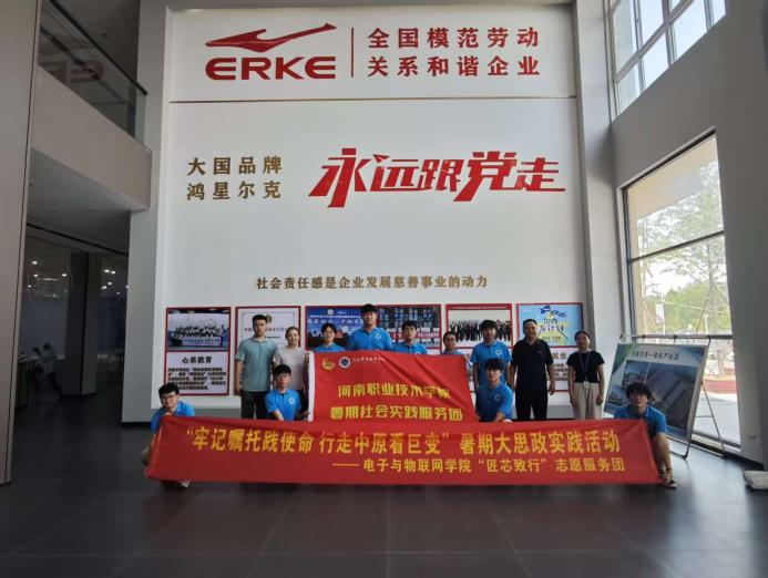 最后,志愿服务团来到鸿星尔克(商丘)实业有限公司。在展厅内,讲解员生动讲述了企业的成长历程与品牌精神。步入繁忙的生产厂房,缝线翻飞、机器运转,一线员工的专注与高效令人印象深刻。大家深切体会到,卓越的产品不仅源于先进技术,更凝聚着每一位劳动者的智慧与汗水。