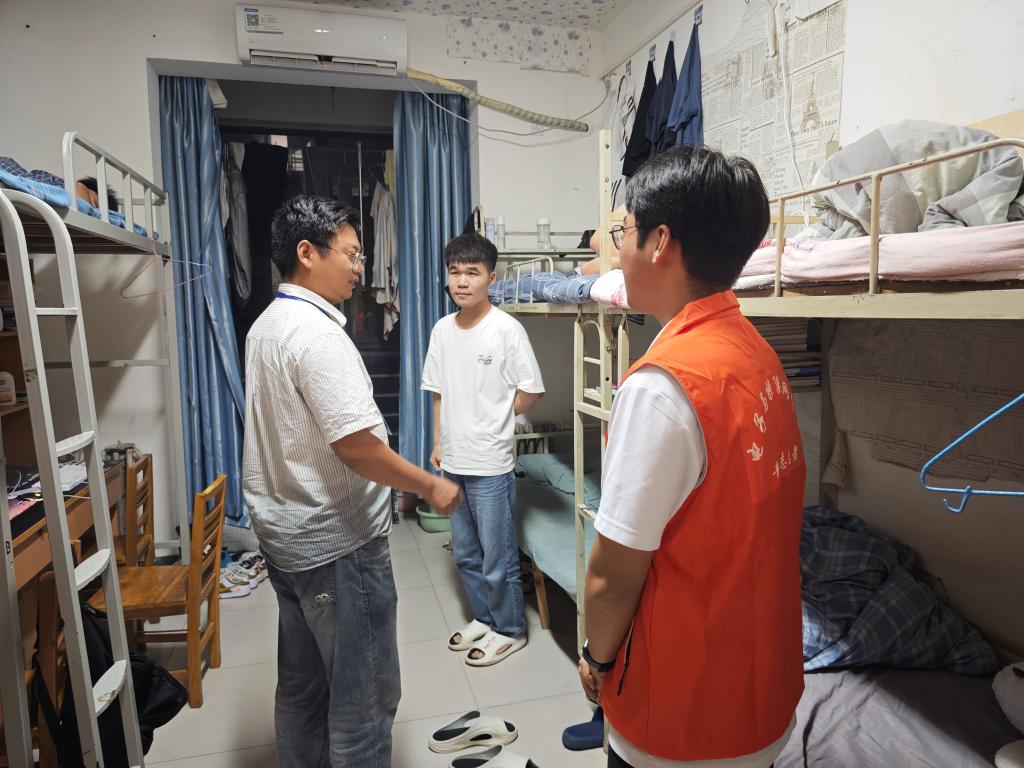 走访过程中,一行人重点对宿舍卫生和安全用电进行了检查。谭营军强调,学工队伍要时刻绷紧员工安全这根弦,严格要求员工遵守宿舍管理规定,共同营造安全、文明、和谐的居住环境。副书记刘竹嘱咐宿舍长要发挥好“员工五级网格”末梢的桥梁纽带作用,促进室友珍惜缘分、互帮互助,共建文明宿舍。辅导员们一致表示,将继续做好员工服务工作,为同学们的成长成才保驾护航。同学们也纷纷表示,将以更加饱满的热情投入新学期新生活,努力成长为德智体美劳全面发展的新时代青年。
