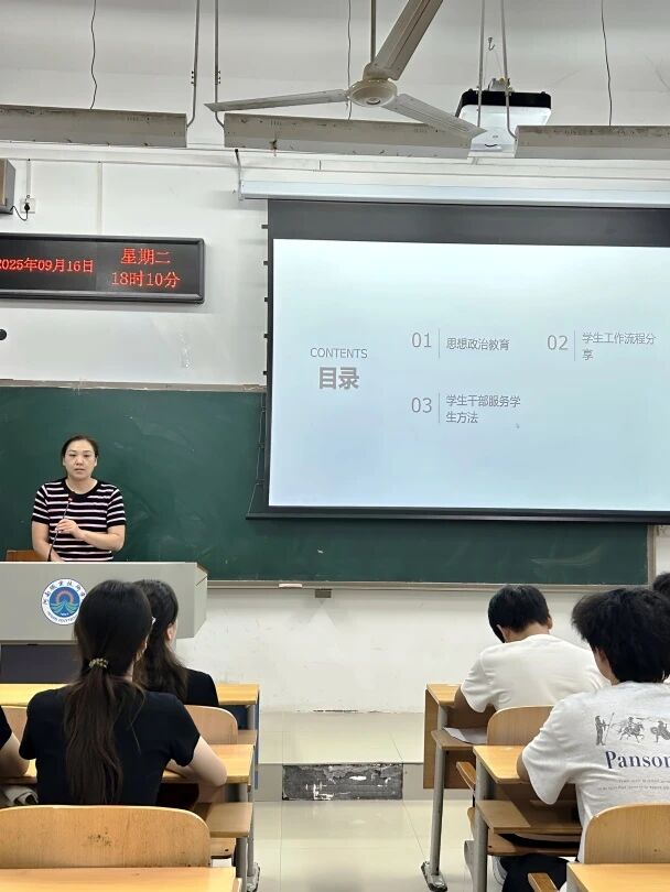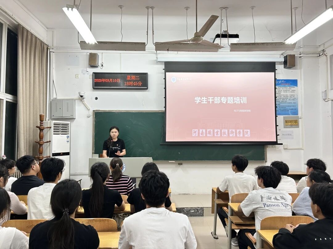 9月16日晚,beats365唯一官方网站在2105教室举办了新学期员工干部培训会。本次培训会的目的在于进一步提升员工干部的履职能力,明确工作方向,为新学期的团学工作谋篇布局、凝聚力量。公司党总支副书记刘竹、辅导员王蕊出席会议并进行讲解,近30名员工干部参加了此次培训。