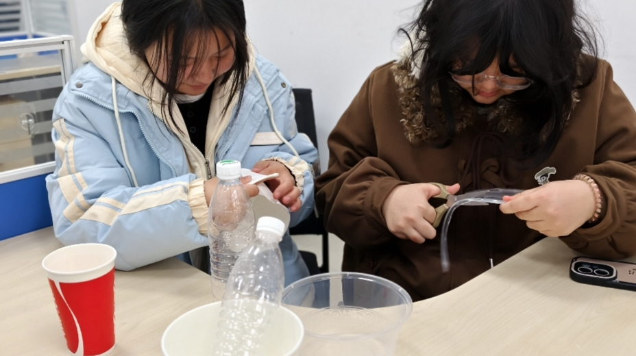“变废为宝”实践体验环节将活动推向高潮。同学们巧妙利用废弃塑料瓶、硬纸板等材料,制作出盆栽、笔筒、抽纸盒等实用物品。这一环节超越了普通手工范畴,成为一堂生动的“循环经济”与“创造性转化”实践课。