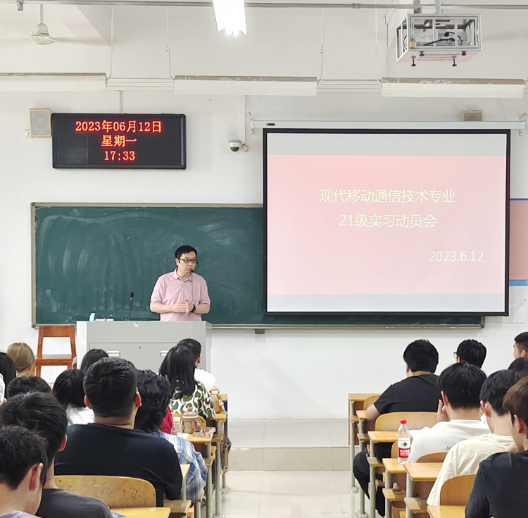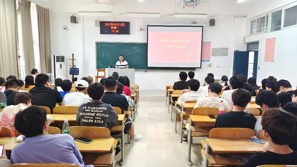 2023年6月12日下午17点30分,现代移动通信技术专业在明理楼1505室召开通信21级实习动员会。现代移动通信技术专业全体教师和通信21级86名员工参加了本次动员会。