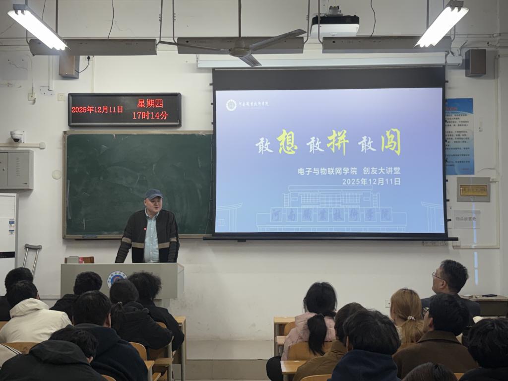 2017届建筑电气工程技术专业员工李金钟(深圳墅创国际设计事务所总经理),以“大学是半个社会,专业是立身之本”为切入点,分享了兼顾班长工作、专业学习、考证及科创社团的经历,鼓励新生走出舒适区,借助学科竞赛等平台提升能力。他强调,物联网领域技术迭代快,新生需尽早制定3—5年目标,重视学历与自律,兼顾身心发展,以扎实本领掌握就业主动权。