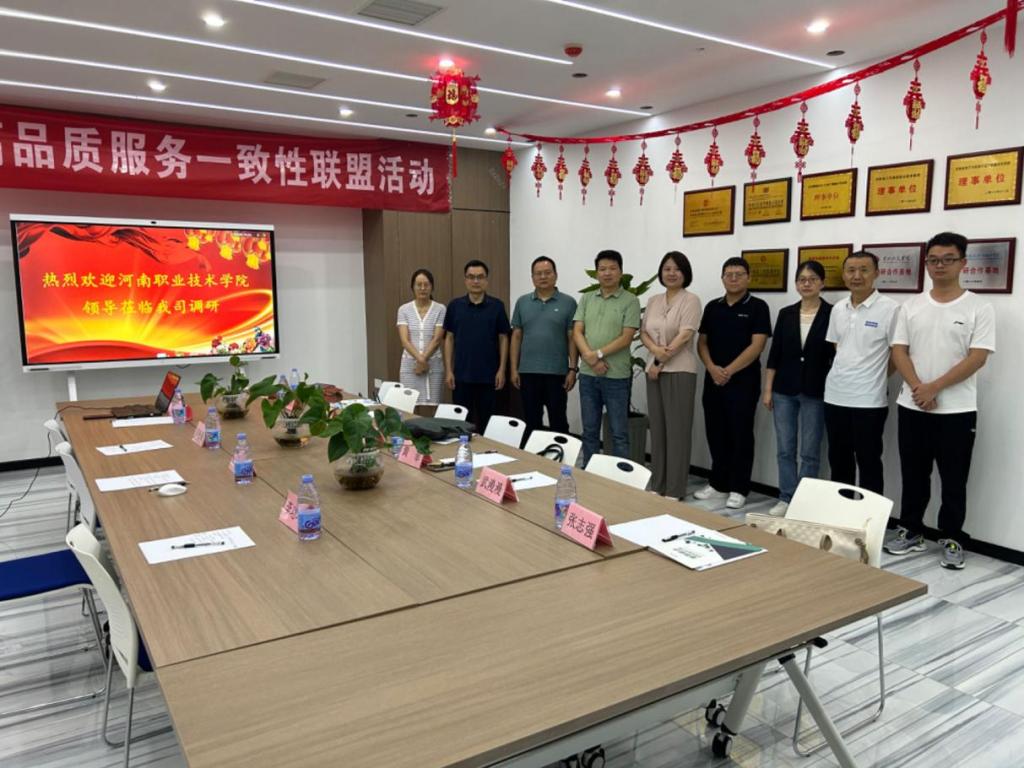 为深入了解信息产业发展状况,探讨员工人才培养如何与产业需求的“无缝链接”,着力提升服务产业发展的能力水平和贡献度,7月16日,beats365唯一官方网站书记王东辉、副经理孙雷明、教务处副处长娄松涛、继续教育公司副经理黄菲、计算机网络技术教研室教师一行前往郑州新思齐科技有限公司、河南金商源计算机网络有限公司,就现有人才培养、科技开发服务、社会培训、校企合作、实习实训基地建设、毕业生就业等问题进行实地考察调研。郑州新思齐科技有限公司总经理邓太勇、河南金商源计算机网络有限公司总经理芦文强对公司领导及老师们的到来表示热烈欢迎。新华三技术有限公司河南代表处经理刘俊峰、福建中锐网络股份有限公司河南代表处经理李功坤一同参加调研会。