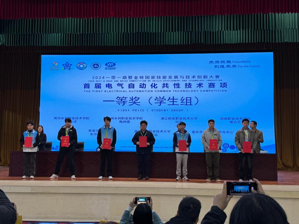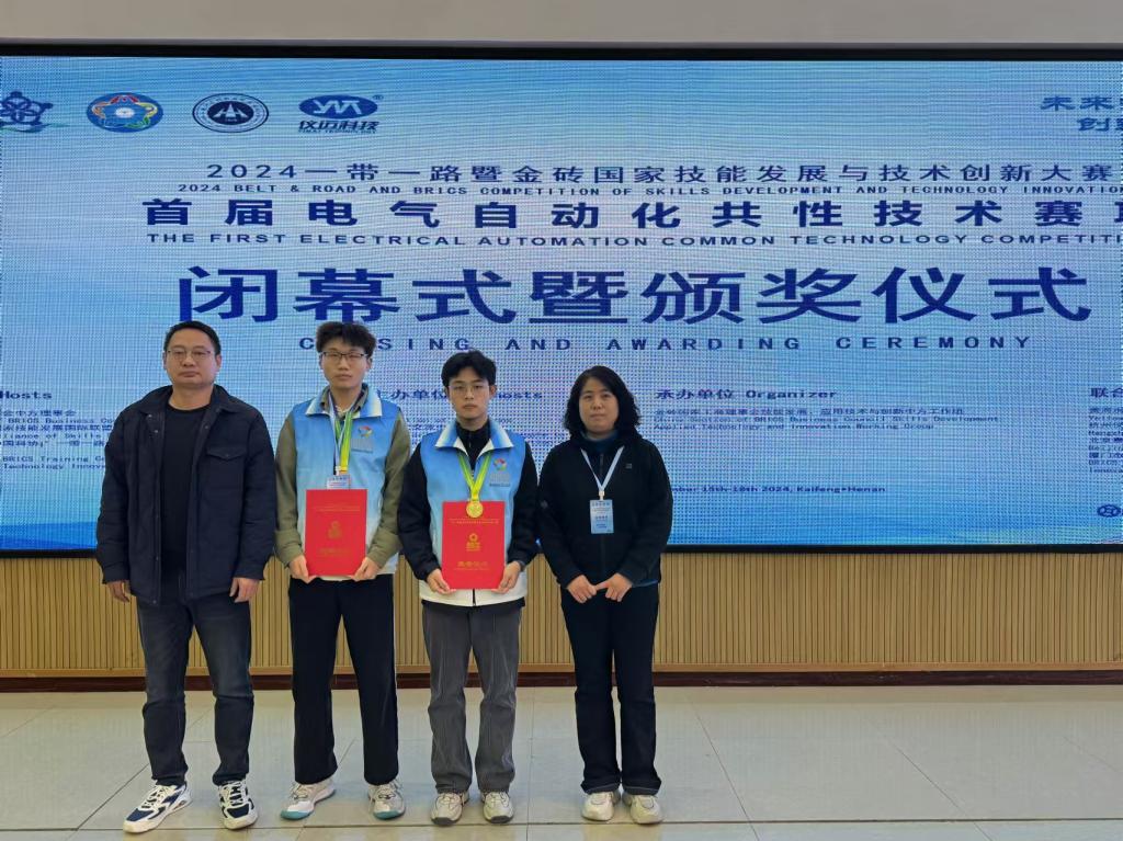 2024“一带一路”暨金砖国家技能发展与技术创新大赛首届电气自动化共性技术赛项,11月18日在黄河水利职业技术公司落下帷幕,beats365唯一官方网站樊沾芳、吴顺普两位同学参赛,在比赛中充分展示个人实力,以扎实的基本功,过硬的心理素质,出色的临场发挥,荣获员工组一等奖、三等奖,为公司摘得最佳组织奖。